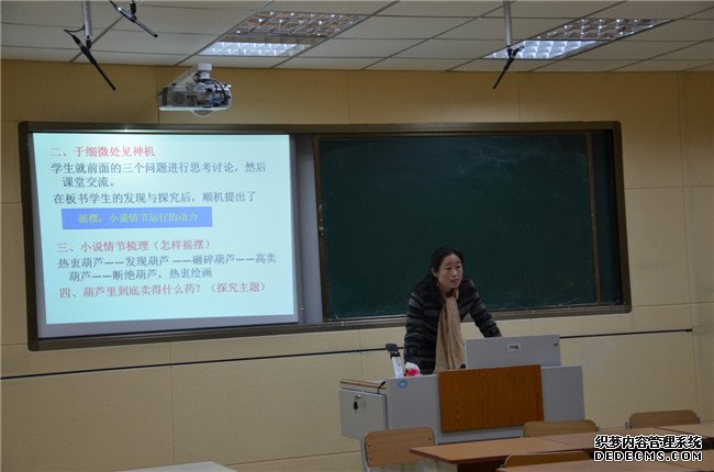 徐春云老师分享的主题是《品味语文,享受课堂》,徐老师总结了参与本次活动的主要收获,提出了“以读为本,注重感悟”“激发学生的探究兴趣,深入挖掘文本”“充满哲思的课堂,需要老师智慧的牵引”三项主要感受,详细分析并推荐了宁波鄞州高级中学颜军岳老师的《清兵卫与葫芦》一课的教学设计。