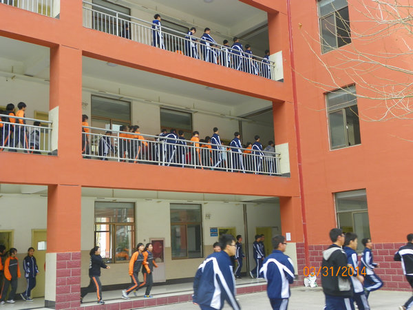 9:20分,演习正式开始。警报拉响之后,同学们立即起身离开教室。许祖刚副校长、学生处王启财主任亲临现场,学生处干事检查监督,班主任及时到位组织学生。学生按从低层到高层的顺序依次下楼,大部分学生都能够安全、快速、有序的从教室到达楼下指定集合地点。演习共进行了两次,从警报拉响到集合完毕,第一次共用时7分10秒,第二次用时4分40秒,整个演练活动达到了预期效果。