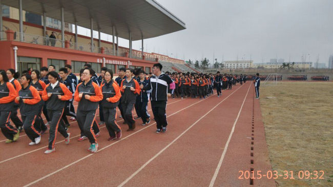 3月31日上午大课间操我校在田径场举办了2015年跑操评比活动,此次活动由学生处牵头组织,体育组全程配合。比赛前制定了周密详细的活动规程,确保整个活动顺利进行。此次跑操比赛将进行三天,三个级部同时比赛,分级部评比。