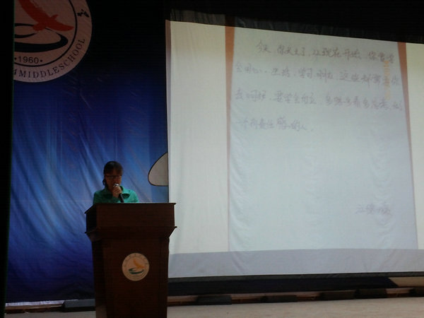 老师和学生讲话的同时,伴随着身后播放的家长们对同学们成长的寄语,解读了“成人”的意义。字里行间中更表达了埋藏在各位家长的心声,莫过于希望各位同学身体健康,好好学习,考上好的大学。平凡的语言,却字字像一股股暖流温暖到你心头。全场静静的品味着一字一句,就在此刻,爱无声无息将现场包围,暖暖的。