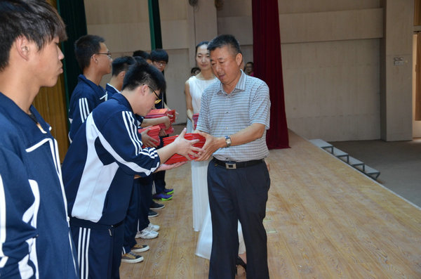 王顺海校长为毕业生代表颁发了毕业证书。他代表学校对全体高三年级教师表示感谢,并对毕业生们提出了殷切希望,希望高三毕业生不忘感恩,要充满思想的阳光、充满爱与宽容、充满奋斗和坚持;要把准备高考视为一种快乐,把拥有高考当做一种财富,把感受高考看成一种幸福。