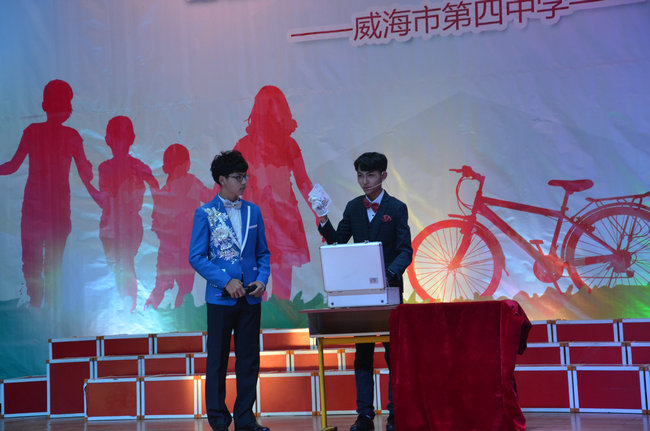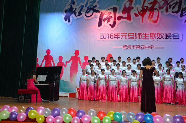 随着灯光亮起,晚会在动感十足、活力四射的开场舞中拉开帷幕。相声《救不救》的幽默搞笑和舞蹈《藤枝叶》的梦幻唯美迎来了阵阵掌声,将现场气氛推向了第一个高潮。由高三老师带来的小品《有笑课间》,延续了2015年元旦汇演中节目的风格,将反串进行到底课,让学生们真正了解平时严肃的老师其风趣可爱的另一面。师生朗诵《元旦在四中》,饱含深情的话语,感动了在场的每一位师生,感谢有你,让四中更美好,感谢四中,让我们拥有每一天的精彩。高三级部老师的舞蹈《小水果》和高一级部老师的年代歌曲联唱让观众们尽情乐在其中,将会场的气氛推向了高潮。学生节目包括小品《甄嬛后传》、二胡演奏《赛马》、古筝合奏《蝴蝶泉边》、吉他独奏《西班牙斗牛曲》,相声《两个弄潮儿》、魔术《幻觉》,幽默的言语、优美的器乐声,让我们看到了学生的多才多艺,让我们进一步坚定了 “多元教育,人人成才”的原则。