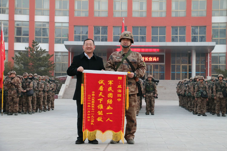 晚餐时,高长春校长带领学校领导班子成员亲切慰问了住校官兵,并详细查看了官兵的住宿情况,反复叮嘱我校后勤人员一定要做好生活保障。清晨,全体官兵整装出发,继续踏上训练征程。学校师生鼓掌欢送,表达对官兵最崇高的敬意。离校前,部队将写有“军民团结如一人,试看天下谁能敌”的锦旗送给学校,以表达他们的感谢之情。