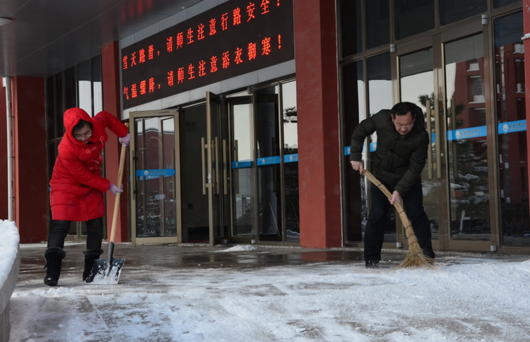 师生同扫雪 情意暖校园