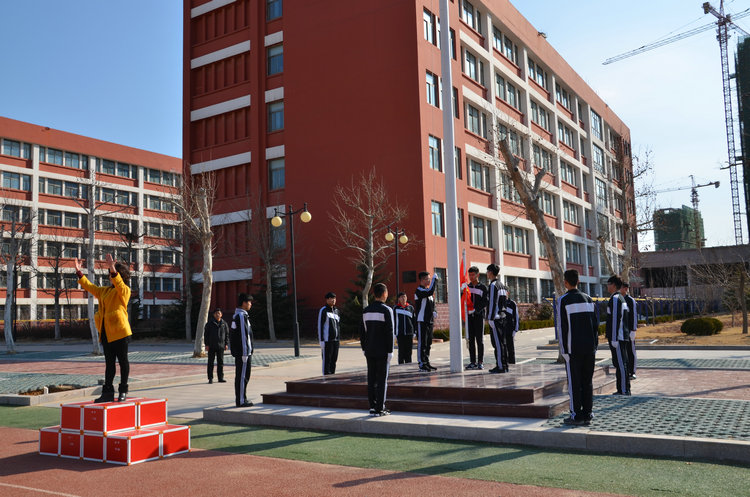 升旗仪式上,护旗手迈着整齐有力的步伐,护卫着鲜艳的五星红旗来到升旗台。随后,全体师生诵唱国歌,“起来,不愿做奴隶的人们,把我们的血肉筑成我们新的长城”、“我们万众一心,冒着敌人的炮火,前进!前进!”,铿锵有力的朗诵声中,感受到的是四中师生们昂扬拼搏的斗志和奋发向上的精神。国歌声响起,伴随着雄壮的乐曲,五星红旗冉冉升起。全体师生凝视着迎风飘扬的五星红旗,心中激荡着爱国之情。