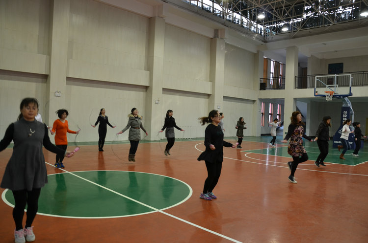 随后,学校在体育馆内举行了单人跳绳比赛。比赛由10人为一组分组进行,分别由于春香、刘晓玲老师和管会娟、周洪香老师负责统计。女教职工根据自己的上课时间,灵活调整来参加比赛。比赛中每位参赛女教师都充满了活动与激情,挥动手中的跳绳,互不相让,她们在运动中感受着节日里的快乐。赛后,学校工会根据比赛结果给予教师相应奖励。