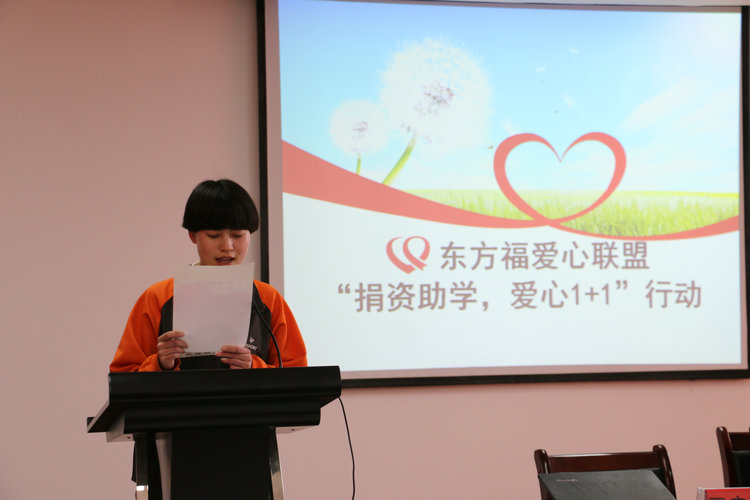 3月17日上午,kkpay00会议室隆重举行由东方福爱心联盟发起的“捐资助学爱心1+1”行动爱心捐助仪式。出席此次爱心捐助仪式的有东方福爱心联盟会长王辉女士,kkpay00邓思源副校长kkpay00学生发展处王启财主任,kkpay002014级张立正主任,以及34位爱心企业家。此外威海电视台、威海日报及威海晚报也对本次仪式进行了全程关注。