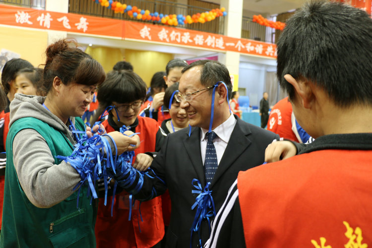 下午活动开始前,主持人随机选择八个团队表演了即兴准备的节目,不拘一格的节目凭新颖的形式赢得了大家热烈的掌声。接下来的“风中劲草”环节,让每一位参与的同学和家长都进一步领悟了团结协作的重要性,主持人另外提醒孩子们在成长过程中也要做好自己以免给他人带来麻烦的重要性。“漫步人生路”环节则让每一位孩子搀扶着蒙上双眼的父母走过脚下的路,让孩子体会了父母的艰辛,感受到父母已渐渐老去,让孩子更懂得了珍惜和感恩。“描绘梦想”环节,孩子们在条幅上画出了自己的“爱和梦想”,展现个人收获。活动即将结束时,家长、老师、义工和孩子互赠代表爱心的蓝丝带表达对他人的爱和感恩。