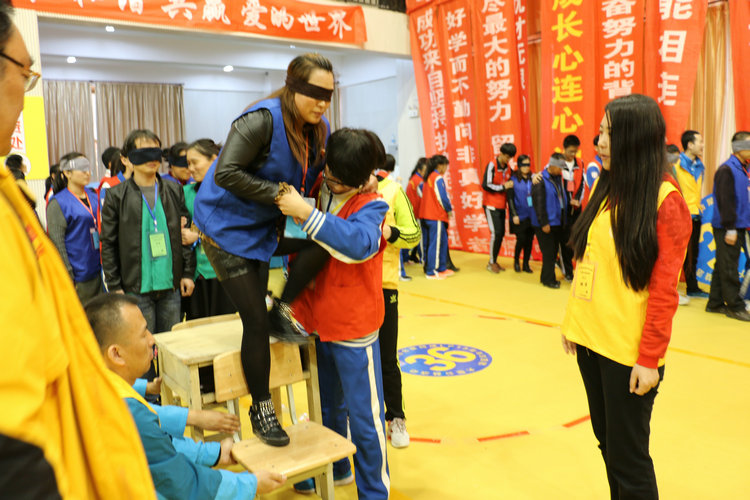 随后的暖场环节,学生、家长、老师和义工都放下身份,自由组合成35个团队,通过“与陌生人打招呼”,增进彼此了解,为现场营造了积极欢乐的氛围。“动感呼啦圈”、“巨型拼图”游戏充分体现了协作精神。通过小组配合快速完成指定内容,进而彼此信任构建快乐的团队。这一过程中,主持人用极富感染力和震撼力的语言,通过互动的方式,分别以关系互动、情感培养和自立自强等为主题进行,场面感人,反响强烈。