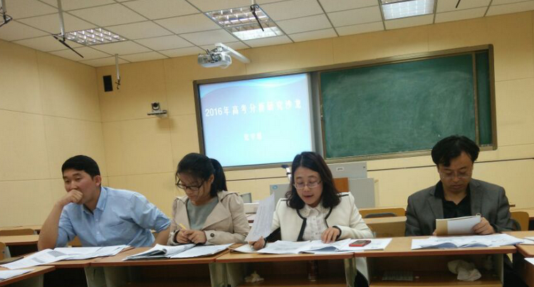 高三三位老师分别从“综合认识”、“案例解析”、“分析预测”、“应对策略”等4个角度阐述各自对不同题型的看法。孙洪兴老师介绍了26题的实验题,吴琼老师分析了27题的元素化合物工艺流程题,邢妍妍老师解读了28题的反应原理综合题。每位老师非常用心的准备了这次活动,并和大家分享了自己的认识。