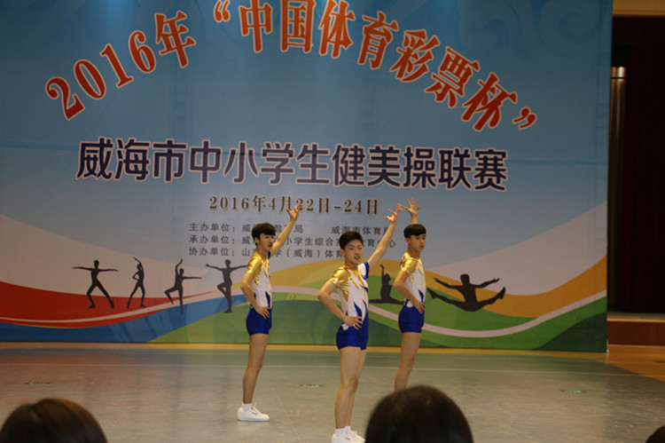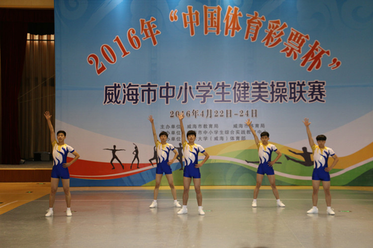 4月22-24日,威海市中小学生健美操联赛在威海市综合教育实践基地召开,我校健美操队创历史最佳成绩。男子三人操以超第二名1.5分的优势夺冠,男子五人操和花球啦啦操均取得第二名。