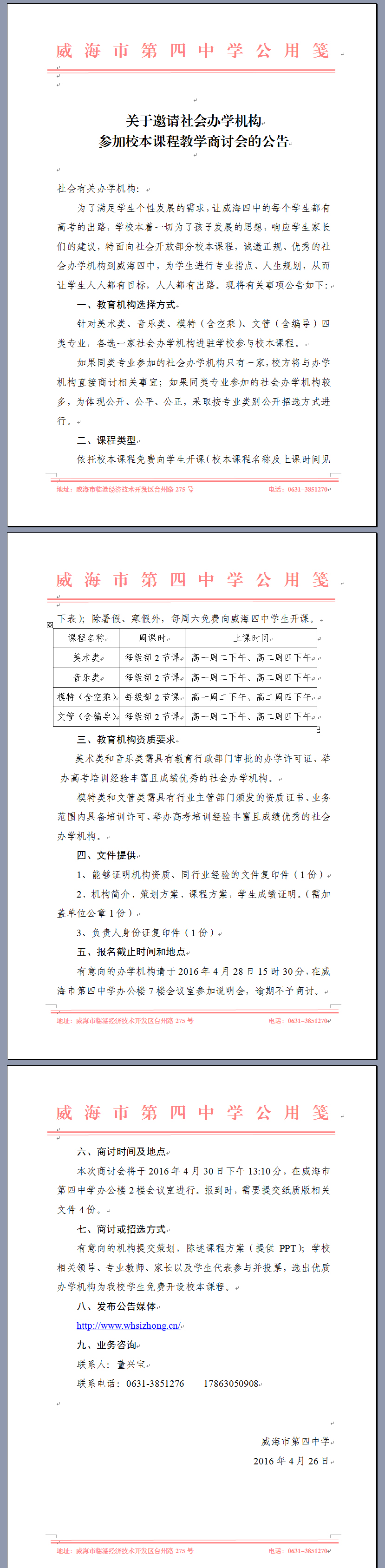 关于邀请社会办学机构参加校本课程教学商讨会的公告