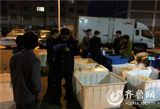 4月27日聯合檢查組對威海市農副産品批發市場進行突擊檢查