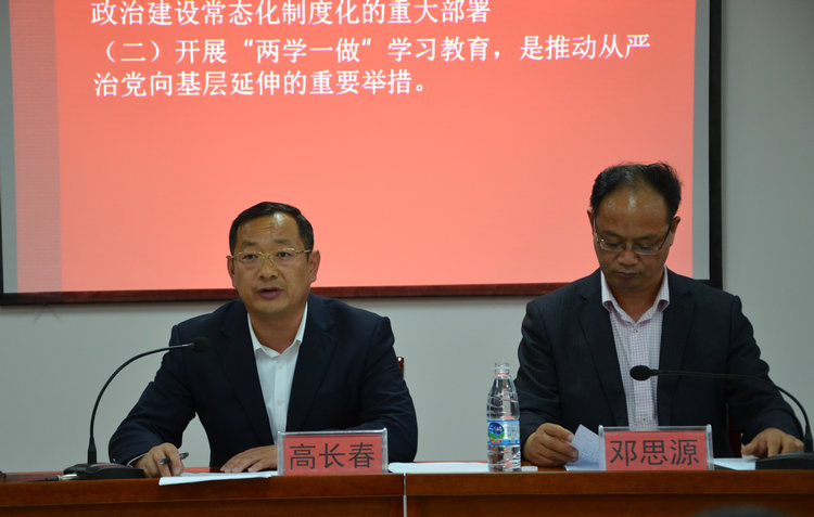 会议由邓思源副校长主持,kkpay00党总支书记、校长高长春同志作重要讲话。会上高校长就我校如何开展 “两学一做”学习教育做了的具体安排和解读,并提出了三点意见。