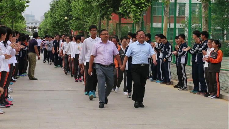 随后,在《解放军进行曲》的歌声中,在高一、高二学生夹道欢送下,高三学子在高校长和高三级部主任刘强的共同带领下奔赴高考战场。高校长与中层领导一起将学生送到校门口,并与考生们相互挥手致意。