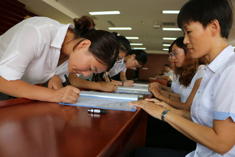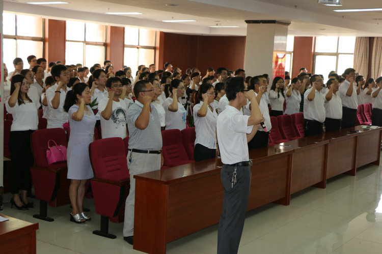 图为全体教职工宣誓