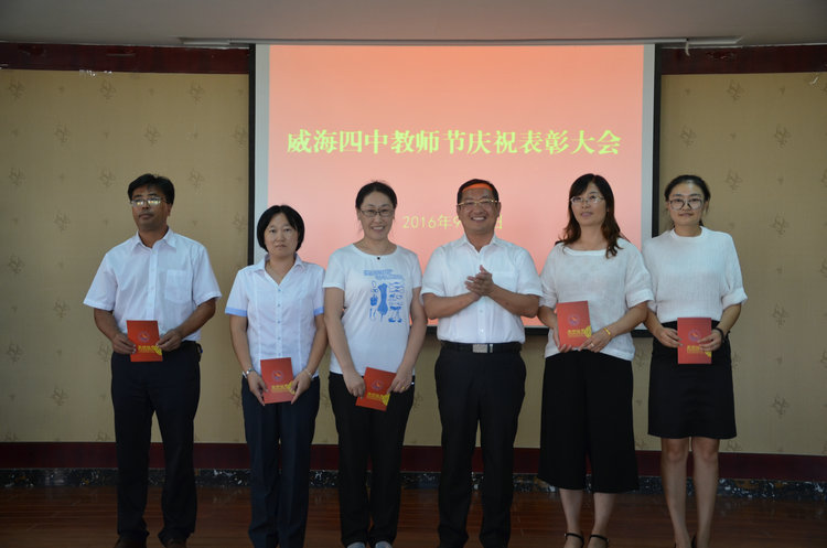 王建光校长宣读了“关于表彰2015至2016学年获奖教师的决定”。在2015至2016学年中,我校有1人被授予威海市德育工作先进个人称号,6人被授予市直德育工作先进个人称号,7人被授予市直教育系统优秀教师称号,14人被授予校级优秀教师称号,15人被授予校级优秀备课组长称号,13人被授予校级优秀班主任称号,10人被授予最美教师称号。随后,学校班子成员为受到表彰的人员颁发荣誉证书。这些受表彰人员师德高尚、学问精湛、业绩突出、成绩斐然,为学校赢得了荣誉,是全体师生员工学习的榜样。学校希望获得表彰的教师能够珍惜荣誉,再接再厉,在今后的工作中继续奋发有为,再立新功,全体教职员工向他们学习,不断加强师德修养,提升境界,以严格的标准要求自己,努力做社会爱戴、学生信任、人民满意的教师。
