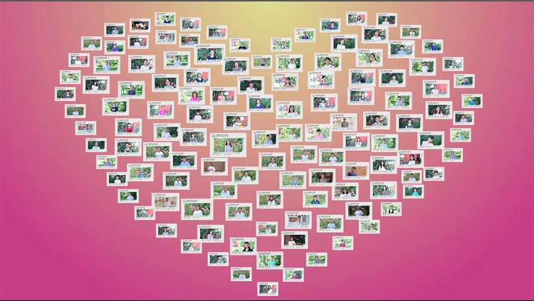 图为全体教职工笑脸组成的心形墙