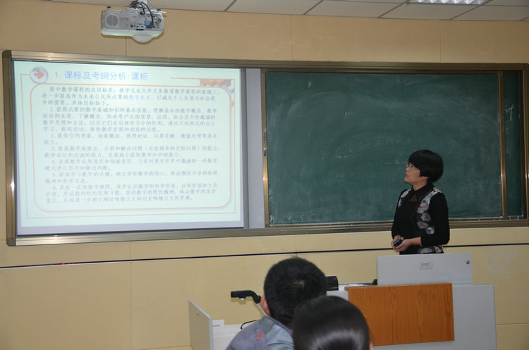 滕华毅老师首先根据考纲和课程说明,介绍了高考数学对学生知识、能力、个性品质的考查要求,然后结合近几年山东高考题,具体分析了高考理科数学考查的侧重点,明确了高三一轮复习要达到的目标,并根据复习目标制定了切实合理可行的复习策略,同时结合近期的复习实践给出了示范。随后,根据备课组制定的复习策略,刘海兰老师结合十月份阶段性考试试题,向与会教师详细介绍了高三数学理科备课组在精选习题方面的优秀做法。石智超老师就一轮复习中要注重解题规范性的训练、注意数学思想方法的渗透等方面谈了自己的理解与看法。