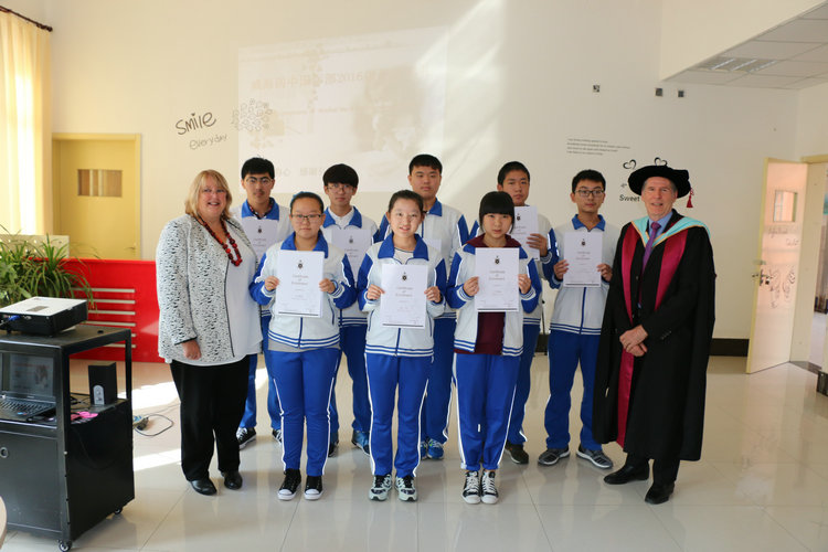 最后,澳洲VCAA官员Nerida女士向2016级新生表示祝贺并颁发了VCE班入学通知书,希望能在澳洲优秀大学看到四中国际部所有的学生。