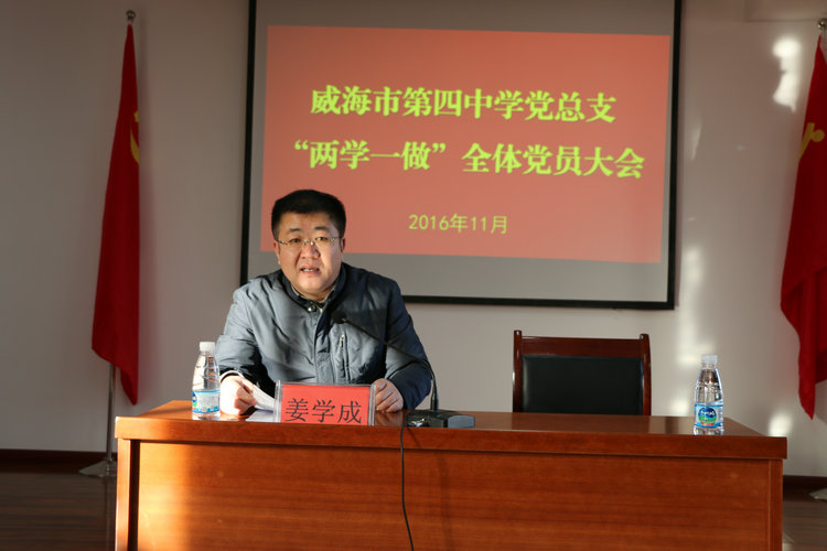 会上,姜学成同志从充分认识十六届六中全会的重要意义,深刻领会学习党章党规、学习习近平总书记系列讲话的重要意义的角度指出教育工作者需要加强四个意识,尤其是核心意识、看齐意识,按照习近平总书记“有思想信念、有道德情操、有扎实学识、有仁爱之心”的四有教师标准,杜绝一些不良行为与习气,把“两学一做”学深学透,把握教育的大方向,不断提高自身修养与理论水平,坚持立德树人,构建合理的课程,为威海教育事业做出应有的贡献。