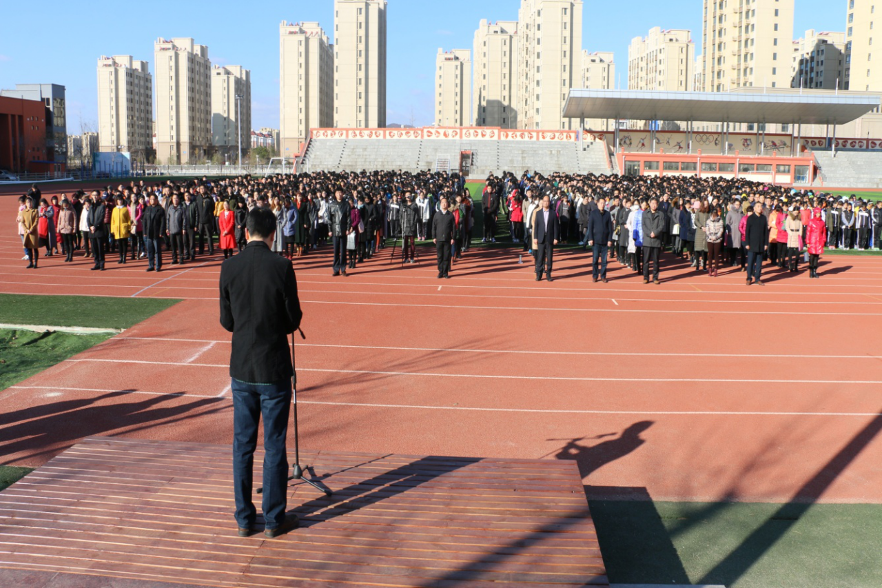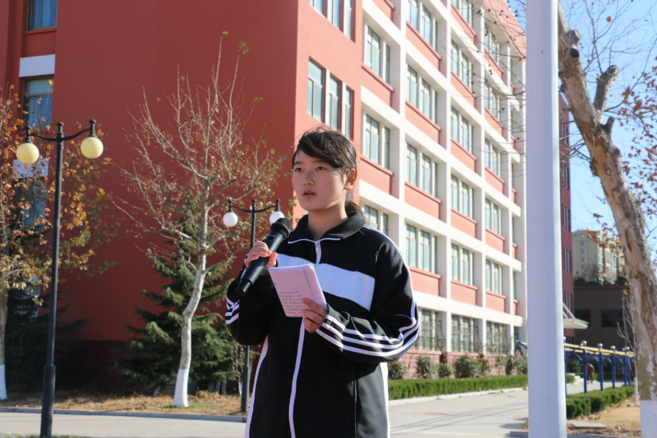 11月28日上午9点10分,我校在体育场举行2016-2017学年第一学期第十三周升旗仪式,领导班子成员、全体教职员工和学生参加升旗仪式。团委书记张相林和高一(9)学生代表分别向全体师生做了主题为“学法、知法、守法、用法,为你、为我、为大家”和“开展宪法教育,弘扬宪法精神”的国旗下讲话。