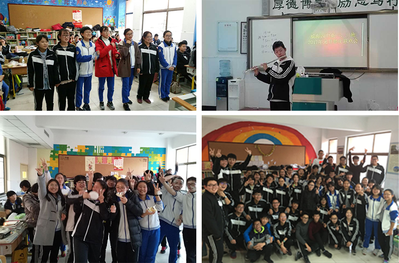 各年级同学也道出了自己的心声。高一同学回顾了进入高中半年以来的点点滴滴,在学校领导与老师的教育与呵护下,他们已渐渐退去了初来时对新环境的陌生,开始融入到这个大家庭中。在四中这半年的时光里,他们不仅养成了良好的行为习惯,在学习和生活各方面均得到发展,而且对新的学期取得更加优异的成绩、获得更大的进步充满了信心。高二同学说,在这一年的时间里同学们更加了解班集体的精神和意义,大家相互扶持、共同进步,学习热情空前高涨,学习成绩有了较大的提高,涌现出一大批由后进变先进的典范。高二的同学在2016年末这一天,郑重立下誓言:新学期必有新起点,以优秀同学为榜样,“择其善者而从之,其不善者而改之”。高三同学说,这是一场释压的“开怀联欢”,为即将结束的高中生活添上更精彩的一笔。随着2017年的到来,高考也越来越近,通过这一学期的不懈努力,高三学生对高考充满了信心,大家把压力转换为动力,将带着火一样的热情投入到下一学期的学习中去,郑重许诺:2017年的高考必胜!