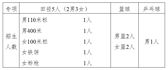 (1)体育各专项具体计划招生人数(不包括高水平运动队):