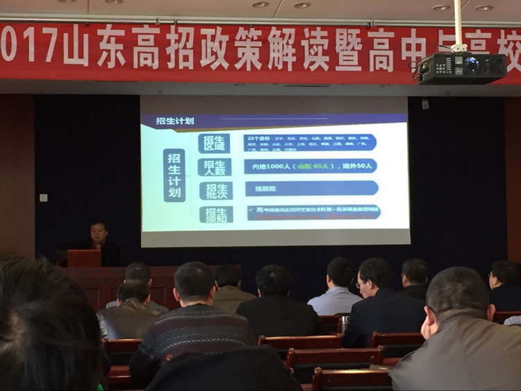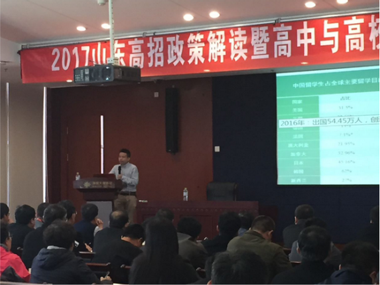 3月31日,中国教育在线在烟台组织《2017年山东省高招政策解读暨高中与高校招生交流研讨会》。得知这一消息后,我校抢抓机遇,认真组织,由邓思源校长带队,桂新光主任、于海生主任、刘强主任、邢燕主任以及董兴宝、周国栋、石向丽和杨付磊老师参加了此次交流研讨会。