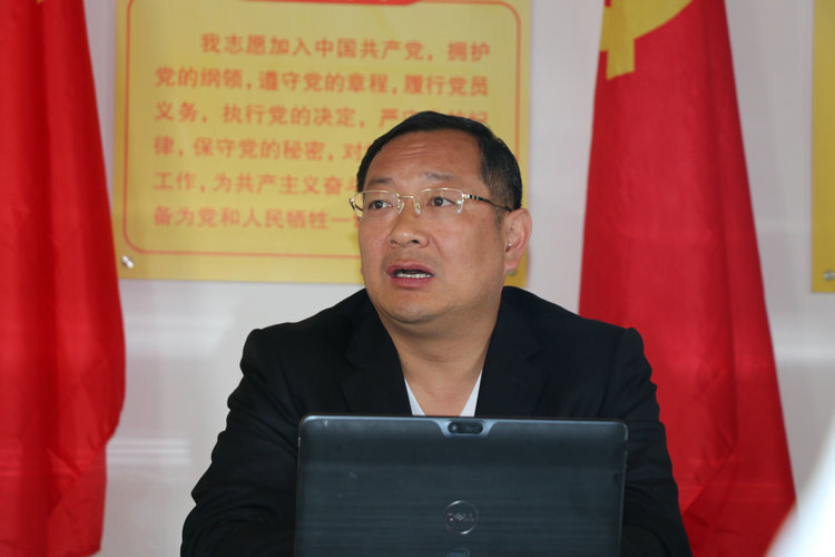 图为kkpay00党总支书记高长春传达会议精神