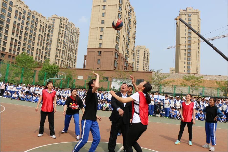 为加强师生联系,增进师生感情,5月5日,高二级部师生幸福篮球赛如期举行。比赛在王校长带领的教师队与高二级部学生联队之间展开。高二级部全体师生参加本次活动。
