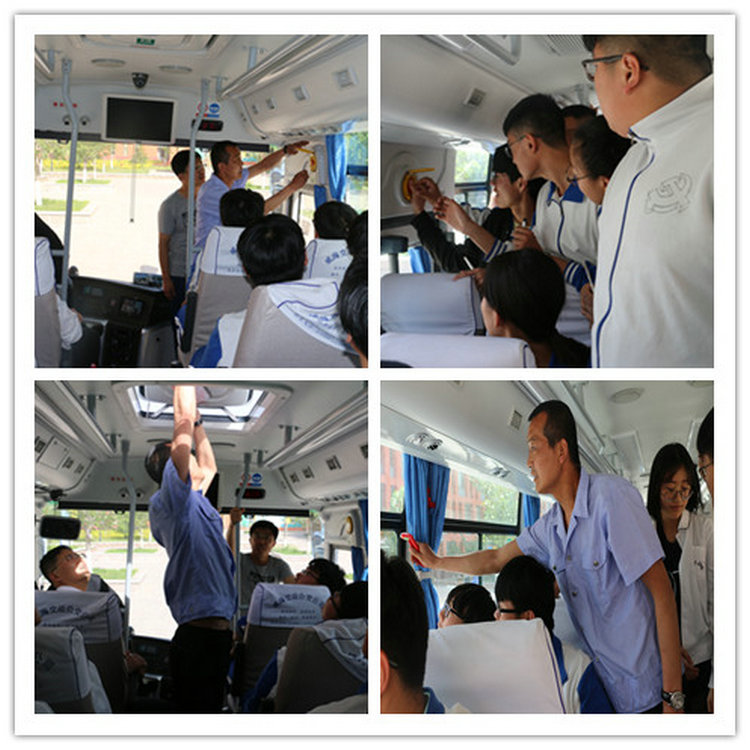 图为威海交运公司为我校学生讲解公交车应急处置措施