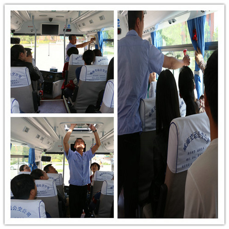 图为威海交运公司为我校教师讲解公交车应急处置措施