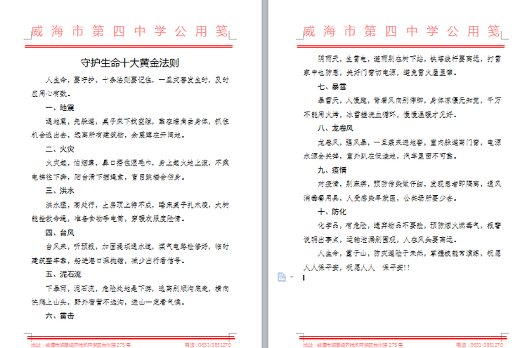 一是进行安全主题教育,内容包括宣传交通法规,观看交通事故逃生视频,学习守护生命的十大法则等。活动旨在加强学生的安全自护意识,掌握事故发生时的急救措施,提高学生自救自护能力,并教育学生以镇定冷静的良好心态面对突发的灾害与险情。