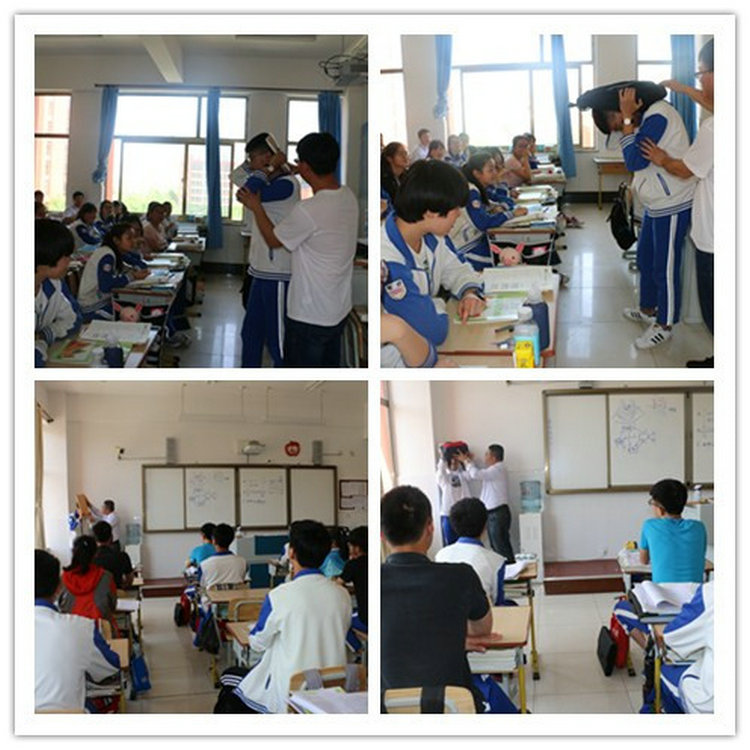 图为各班班主任老师于险灾模拟现场引导学生体验多种避灾方式