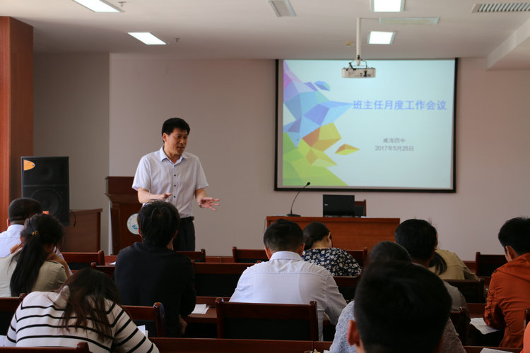 5月25日上午,我校在二楼小会议室召开了本学期第四次全体班主任工作月度会议。会议由学生发展研究中心邢燕主任主持,王建光副校长、桂新光主任、于海生主任、张立正主任出席会议,学生发展研究中心干事和全体班主任参加会议。