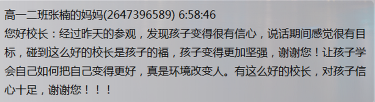 通过一个上午的参观,同学们纷纷表示:此次参观学习受益匪浅,令人深受启发,不仅对创新创业有了实质性的认识,更明白想要实现梦想应更加刻苦学习,努力掌握更多知识,锻炼个人能力,提升实践技能,培养创新意识,将创新创业列为自身的职业生涯规划中。此次活动也得到了学生家长的大力支持和称赞。参观结束后家长感叹道,高校长这种创新的教育理念使学生走出封闭的小圈子,接触到最具有生命力的创新前沿,这不仅开拓了学生的视野,更有利于学生人生发展的规划和长远目标的建立。