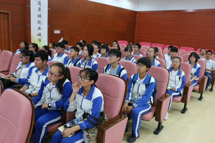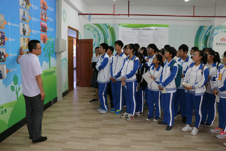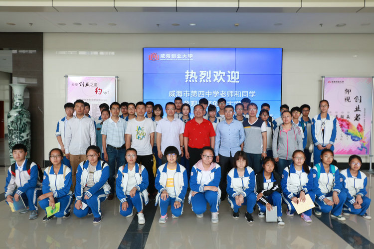 为开拓学生们的视野,提升他们的思维能力和创造能力,进而增强大家的学习动力,高长春校长带领部分教师和高一部分同学于6月7日上午参观了威海创业大学。——幸福四中师生参观创业大学