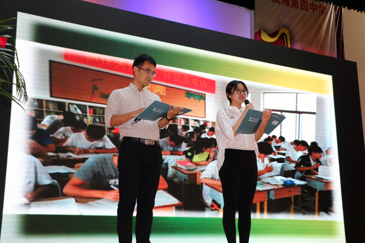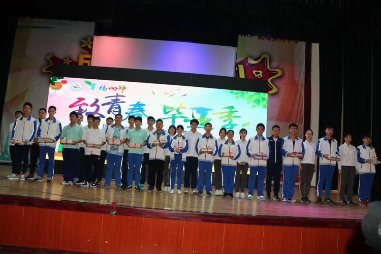 母校是永远珍藏在记忆深处的美好回忆,是每一位即将毕业的学子深深眷恋着的地方。高三学生代表王丹晨同学上台发言,表达了对老师和学校的感激之情,同时表示踏出校园的他们一定会谨记四中精神,拼搏奋进,实践“让四中因我而美丽,让世界因我而美丽”的诺言。 为了将四中精神传承下去,学长助学团的毕业生们向高二学弟学妹们赠送他们的知识宝典——学习笔记。高二王晨同学代表学弟学妹向高三各位学长学姐表达了最诚挚的感谢和祝福,祝他们金榜题名,一路凯歌,同时激励高一高二年级同学奋勇向前,自强不息。