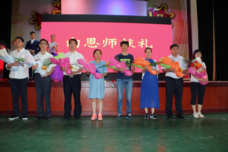 师恩如山,情深似海。温馨感人的回忆之后是深情款款的感恩活动。学生代表邓雪饱含深情娓娓而谈,向父母、向学校、向老师表达了她的感激之情。三年来,老师和学生结下深深的情谊,学生代表上台为高三全体教师、领导及工作人员献上了鲜花,以表达他们崇高的敬意,感谢他们的辛苦付出。