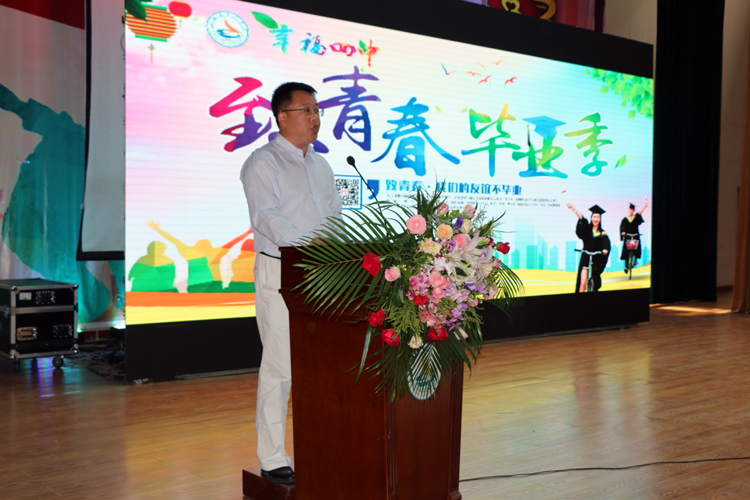 六月的花儿凋谢了芬芳,却迎来了硕果飘香;六月的别离带来了感伤,却也指引着我们走向辉煌。幸福四中的学子们,请你们带上母校的嘱托与祝福大胆地起帆远航吧!祝你们:鱼跃龙门!梦想成真!前程似锦!