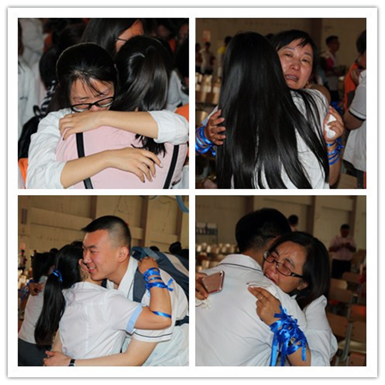 典礼的最后,大家齐唱歌曲《歌唱祖国》,同学们纷纷将寓意为感恩的蓝丝带系在老师的身上,离别的泪水一次又一次的盈满眼眶,离别的话语一次又一次地哽咽在喉……