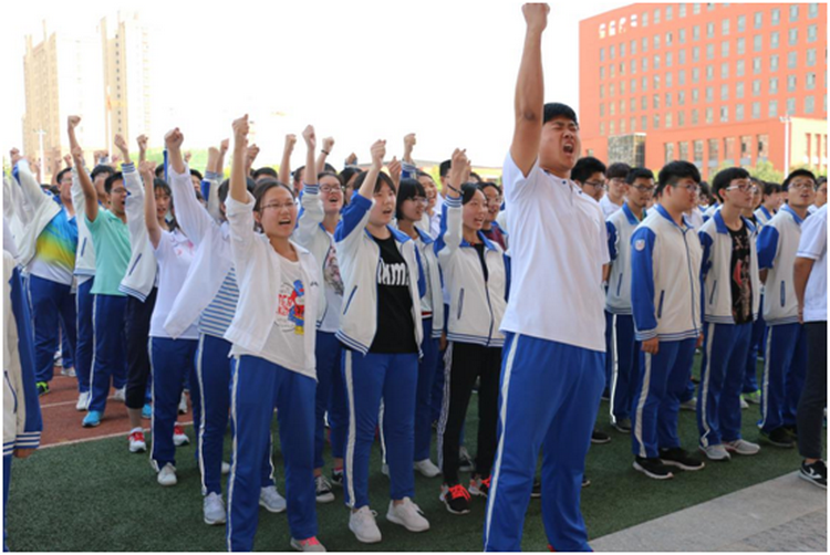 图为高校长激励动员全体高二学生