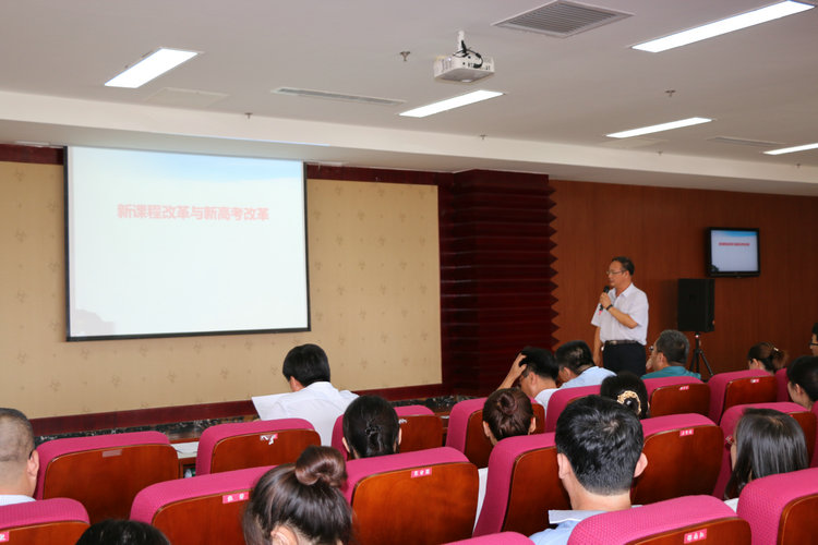 邓思源校长围绕新高考制度改革和新课程改革,为大家敲响了改革的警钟。改革涉及到学校里的每一位老师,要求大家要从思想上重视,认识上提高,行动中落实,要深刻理解新一轮改革的本质,清楚的认识带来的挑战。认真研究课程改革、高校招生等方面的政策,重视研修,重视培训,多阅读拓宽自己的视野,提升个人素养。