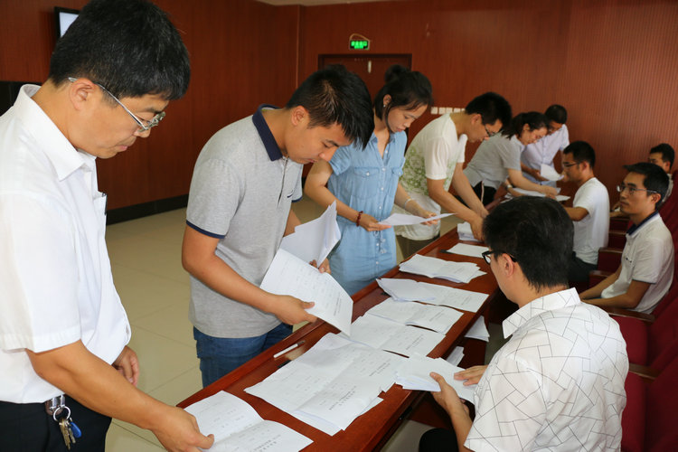 会议由于春波主任主持中层干部竞岗和威海市市级师德标兵评选活动。中层干部竞岗进行的是教务处副主任竞聘,经过演讲答辩和全体职工代表民主测评,候选人董兴宝同志演讲得分58.55,民主测评得分39.59,总分98.14。经学校党总支研究决定,聘董兴宝同志任kkpay00教务处副主任。随后进行师德标兵评选活动,四名候选人周国栋、房丽静、刘强、张玉彬,经投票表决,刘强老师以高票当选。