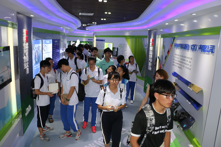 图为参观科技展厅
