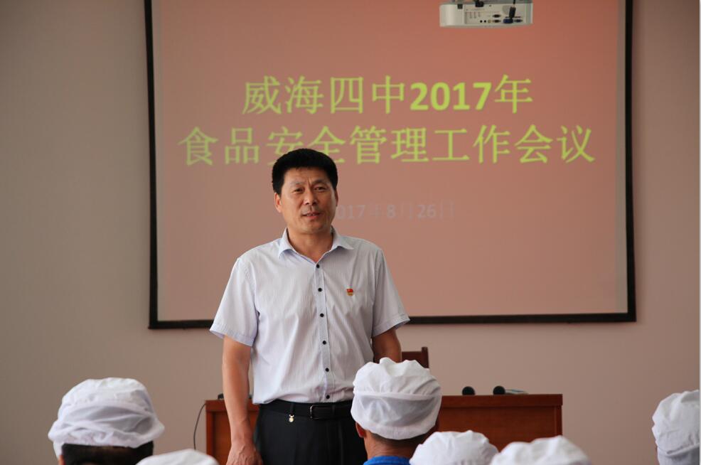 为认真贯彻落实山东省食品药品监督管理局和山东省教育厅《关于开展学校食堂食品安全大培训大检查大整改大提升的通知》精神。8月26日下午,我校在二楼小会议室召开了新学期安全管理工作会议。会议由王建光副校长主持,于春波主任、耿少华主任、售货机经理以及餐厅所有工作人员参加了本次会议。