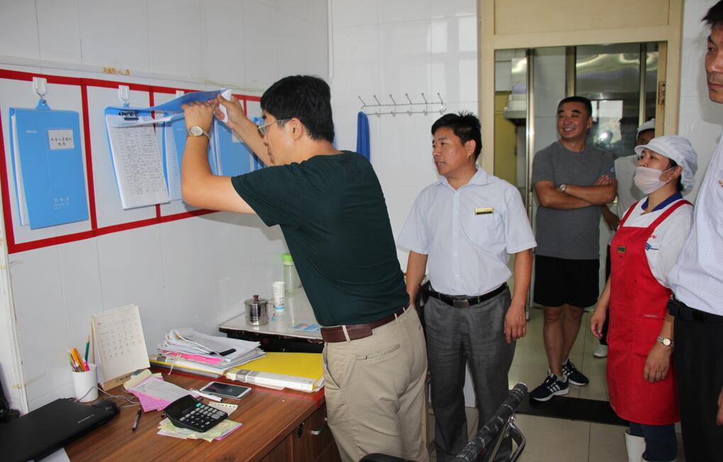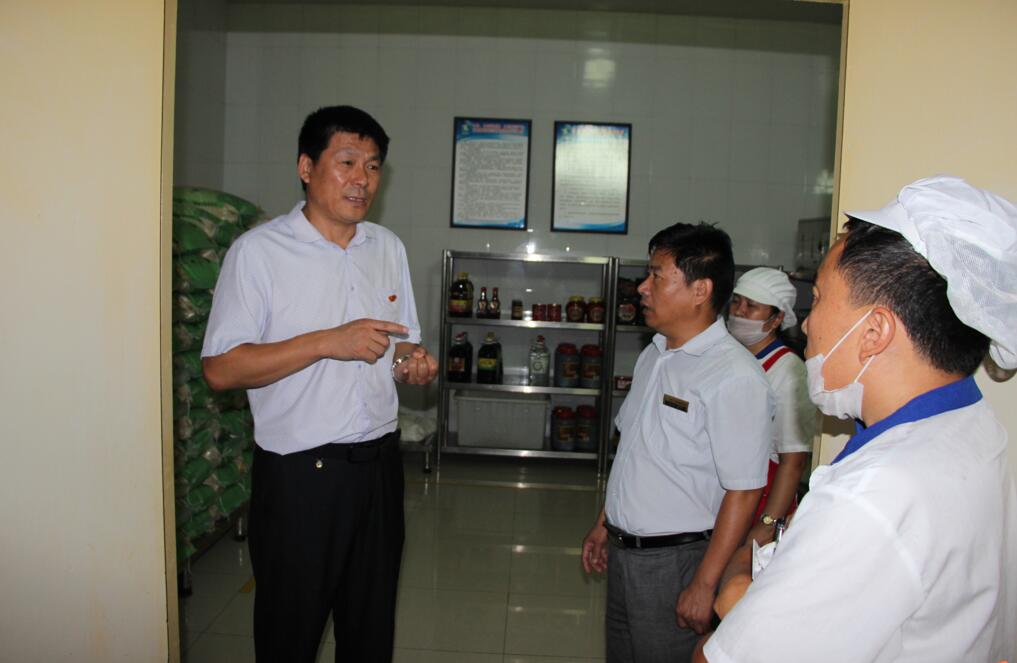 图为我校领导与二楼食堂经理、厨师长交谈安全注意事项