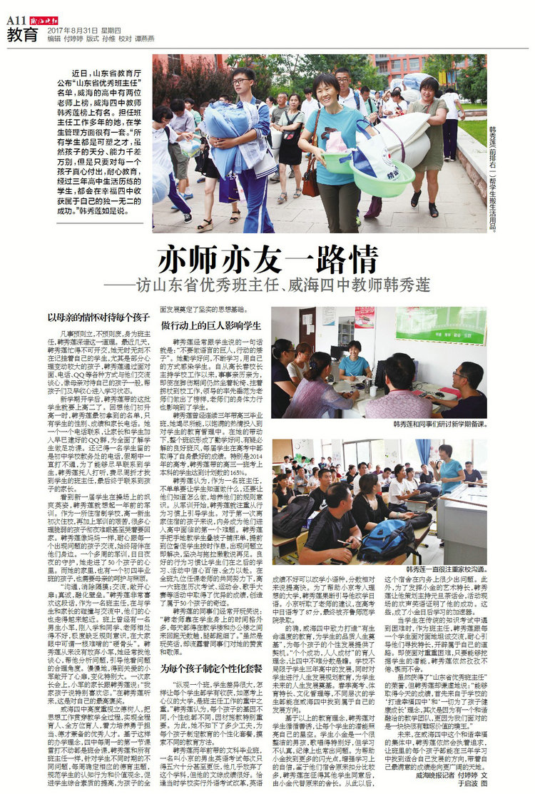 亦师亦友一路情——访山东省优秀班主任韩秀莲