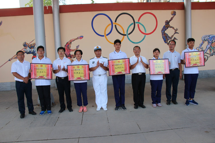 学校领导为优胜连队颁发奖状